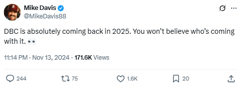 DBC is absolutely coming back in 2025. You won’t believe who’s coming with it. 👀
