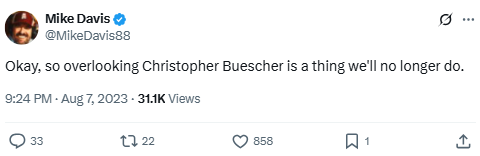 Okay, so overlooking Christopher Buescher is a thing we’ll no longer do.