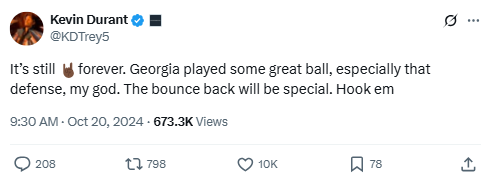 Durant stays loyal to the Texas Longhorns after a tough loss to Georgia. He praises the opponent while backing his alma mater’s future—a mix of fanhood and optimism.