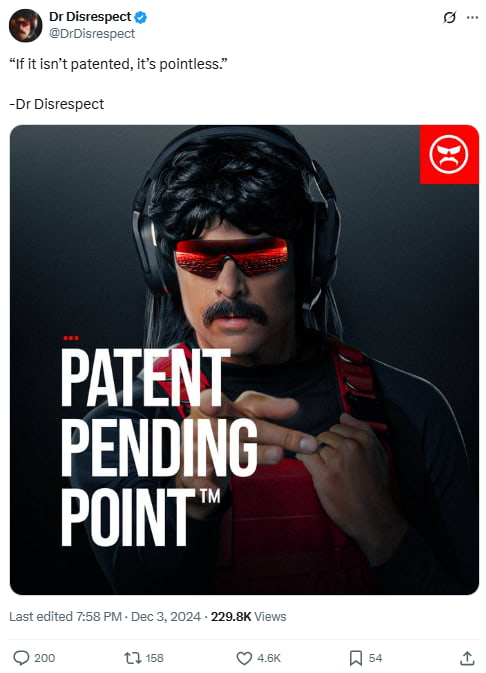 Source: https://x.com/DrDisrespect/status/1864006189207433718