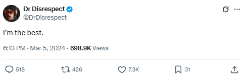 Source: https://x.com/DrDisrespect/status/1767315077043216819