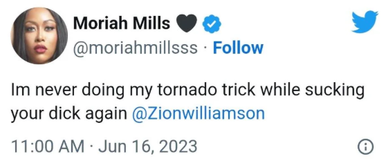 “Im never doing my tornado trick while sucking your dick again @Zionwilliamson”