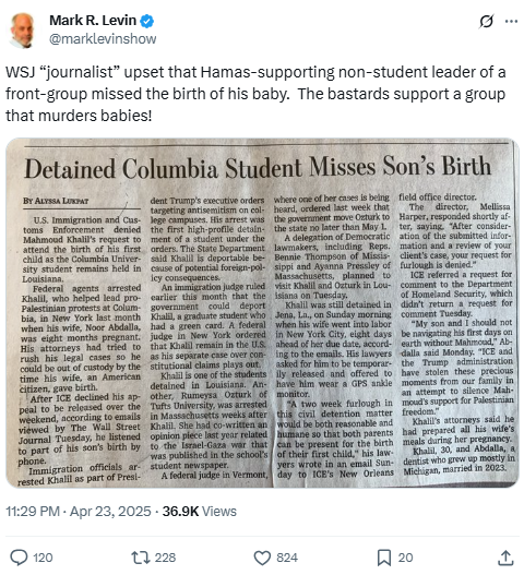 Source: https://x.com/marklevinshow/status/1917770061986816500