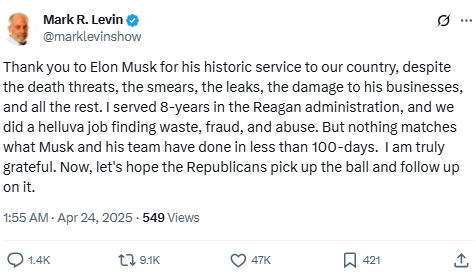 Source: https://x.com/marklevinshow/status/1915140989938774191