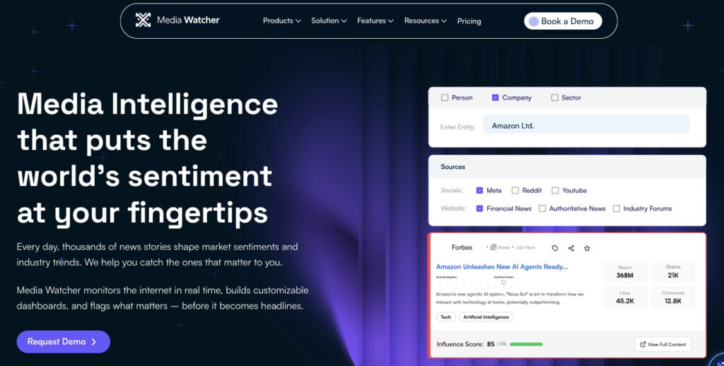 The platform offers multilingual support, customizable alerts, and AI-driven analytics to deliver accurate insights. With its advanced sentiment analysis and real-time dashboards, Media Watcher helps teams stay informed, make data-backed decisions, and protect brand reputation effortlessly.