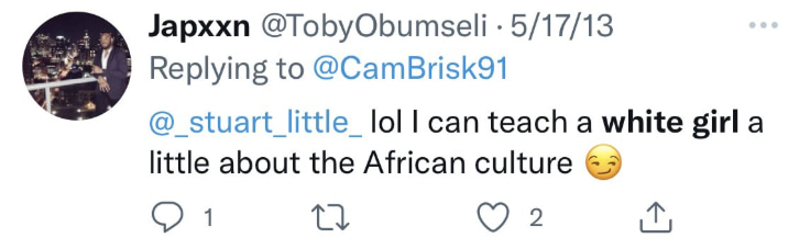 Attached to the tweet were screenshots of Obumseli’s old posts, including one where he wrote, “Can’t believe #oomf thinks I talk to black girls when I don’t…” and another comparing “white titties > black titties.” These tweets served as evidence for many that Obumseli had publicly disrespected Black women for years.