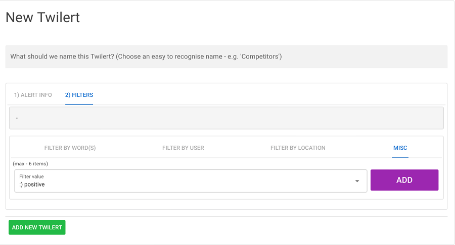 Twilert is great for anyone who wants to stay on top of all mentions and events on Twitter (even if you’re not keeping an eye on things in real time). Setting it up is super easy: you simply enter the keywords, phrases, or mentions you want to track. You can add filters to collect data only from certain regions or within specific time frames. This is perfect if you’re focused on a local audience or targeting specific events.