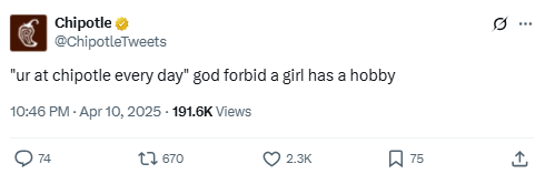 Source: https://x.com/ChipotleTweets/status/1909730407899406423