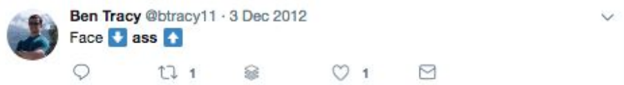 This tweet contains crude sexual innuendo and reflects poor judgment. Posting content like this publicly is inappropriate, especially for someone seeking or holding a professional role. It contributes to the overall pattern of unacceptable and immature behavior in Tracy’s online history.