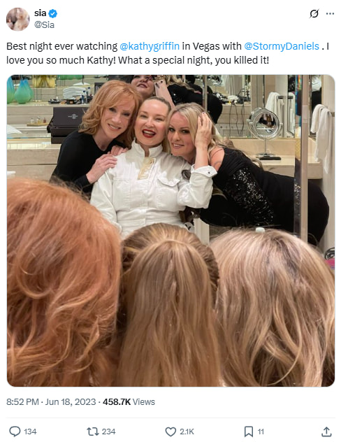 Sia attended Kathy Griffin’s comeback performance at The Mirage in Las Vegas alongside Stormy Daniels. Her tweet captured the excitement of the night and highlighted the support within the celebrity community, especially toward women known for resilience and outspokenness.