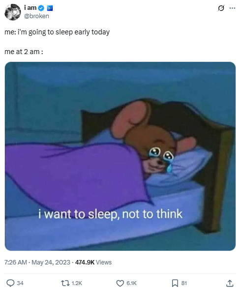 Too relatable for anyone with bad sleep habits. This one became a TikTok favorite for late-night scrolling confessions and insomnia humor.