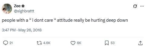“people with a ‘i dont care’ attitude really be hurting deep down”