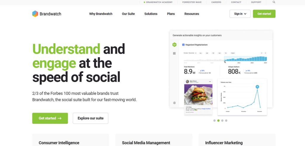 A key feature of Brandwatch is its audience segmentation, allowing users to break down demographic data from both social media audiences and customer lists for detailed insights. By tracking brand and competitor mentions, the tool helps businesses understand market trends and shifts in audience sentiment, making it an essential resource for staying competitive.