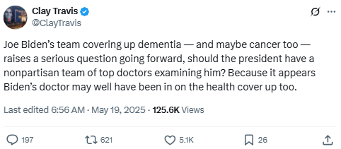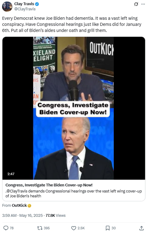 Travis called for Congressional hearings to investigate what he claimed was a coordinated cover-up of Biden’s cognitive decline. He compared it to the January 6th hearings and suggested Democrats knowingly concealed Biden’s condition during his presidency.