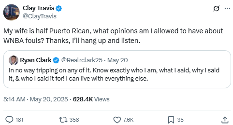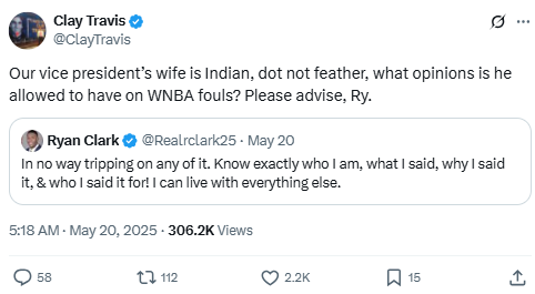 Travis continued the discourse with another sarcastic take, questioning if his own interracial marriage affected his right to comment on WNBA controversies. This was part of a broader feud involving Robert Griffin III and debates over identity and bias in sports.