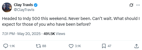 Clay Travis expressed excitement about attending the iconic Indianapolis 500, asking his audience for tips. The event, known for patriotic tributes and a crowd of over 300,000, is a Memorial Day staple. Fans chimed in, suggesting traditions like the Purdue Marching Band and stops at St. Elmo’s Steakhouse.