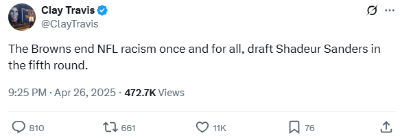 The Browns end NFL racism once and for all, draft Shedeur Sanders in the fifth round.