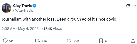 Journalism with another loss. Been a rough go of it since covid.