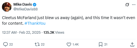 Cleetus McFarland just blew us away (again), and this time it wasn’t even for content. #ThankYou