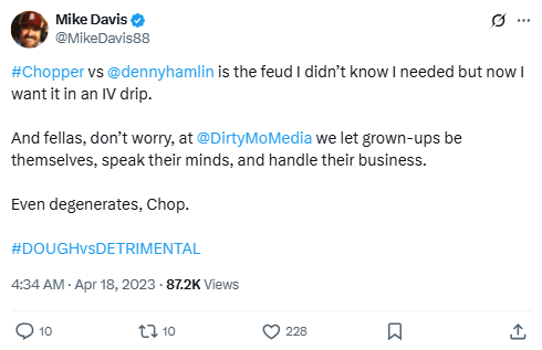 Mike Davis, President and Executive Producer at Dirty Mo Media, is known for his unapologetic, humorous, and sometimes pointed commentary on motorsports and media. Whether celebrating NASCAR wins or calling out content thieves, Davis’ tweets often generate buzz far beyond the racing world. Here’s a look at the posts that got fans talking.