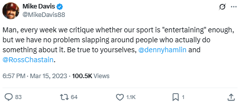 Man, every week we critique whether our sport is “entertaining” enough, but we have no problem slapping around people who actually do something about it. Be true to yourselves, @dennyhamlin and @RossChastain.