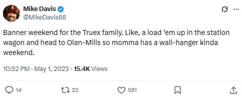 Banner weekend for the Truex family. Like, a load ‘em up in the station wagon and head to Olan-Mills so momma has a wall-hanger kinda weekend.