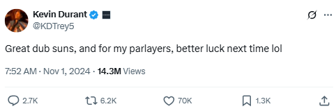 12. “Great dub Suns, and for my parlayers…”