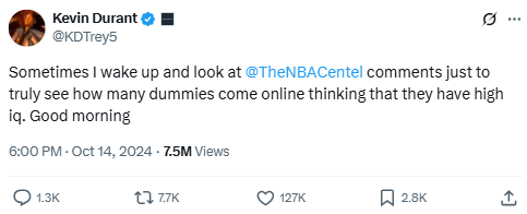 Durant starts his day with a roast aimed at a parody account’s followers. It’s classic KD—mixing annoyance and humor in a single sentence. This one sparked plenty of reactions from fans and trolls alike.