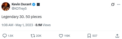 Source: https://x.com/KDTrey5/status/1652797199254683650