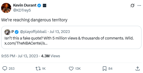 Durant warns against misinformation after a fake quote about him went viral. He responds to NBACentel’s made-up post, addressing the growing issue of fake news on sports social media.