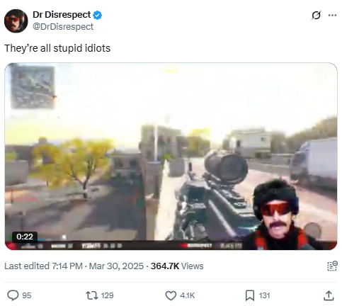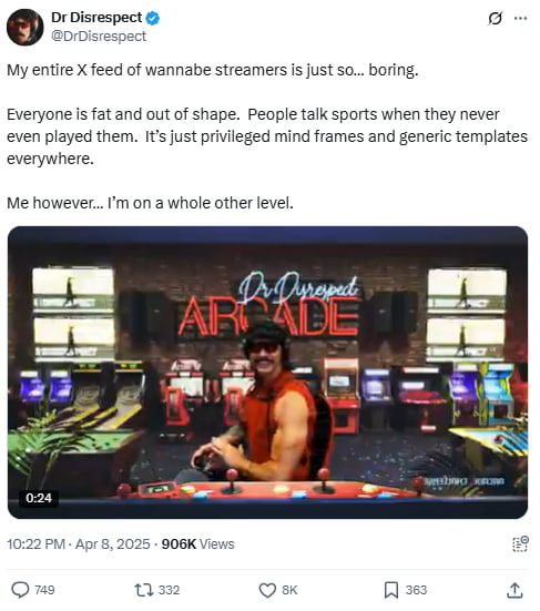 Source: https://x.com/DrDisrespect/status/1908287643642962429