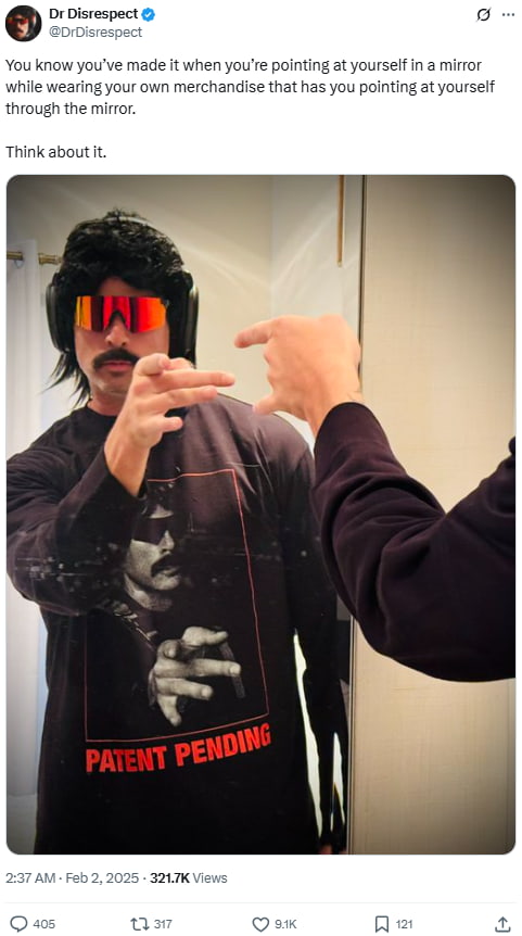 Source: https://x.com/DrDisrespect/status/1885850008701853915