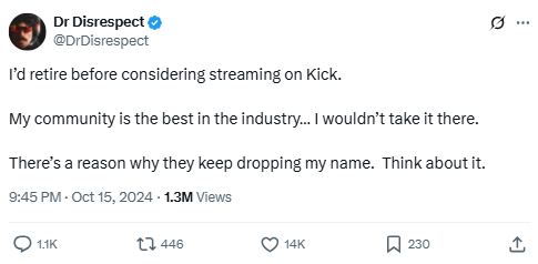 Source: https://x.com/DrDisrespect/status/1846261052138266821