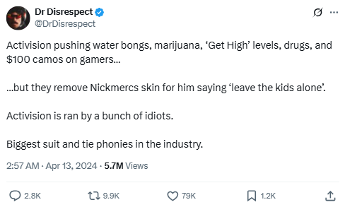 Source: https://x.com/DrDisrespect/status/1778935581252473002