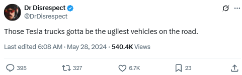 Those Tesla trucks gotta be the ugliest vehicles on the road.