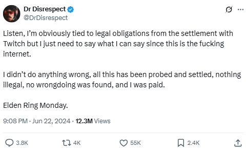 Source: https://x.com/DrDisrespect/status/1804577136998776878