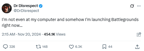 Source: https://x.com/DrDisrespect/status/1855437487105097869
