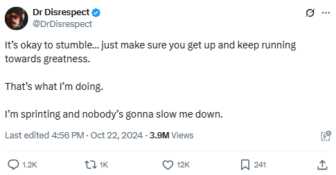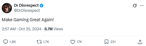 Source: https://x.com/DrDisrespect/status/1849601175978639770