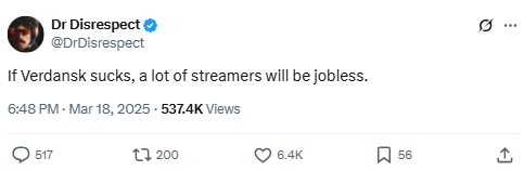 Source: https://x.com/DrDisrespect/status/1895155027075047672
