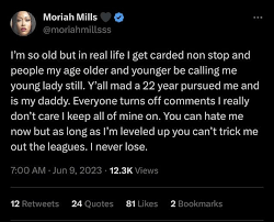 “I’m so old but in real life I get carded non stop and people my age older and younger be calling me young lady still. Y’all mad a 22 year pursued me and is my daddy. Everyone turns off comments I really don’t care I keep all of mine on. You can hate me now but as long as I’m leveled up you can’t trick me out the leagues. I never lose.”