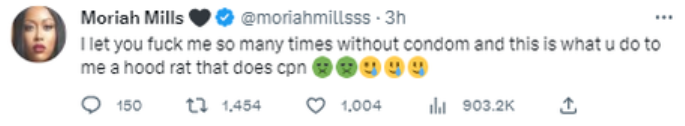 “I let you fuck me so many times without condom and this is what u do to me a hood rat that does cpn 🤢😐🙃🙃🙃🙃”