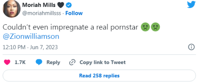 “Couldn’t even impregnate a real pornstar 🤢🤢 @Zionwilliamson”