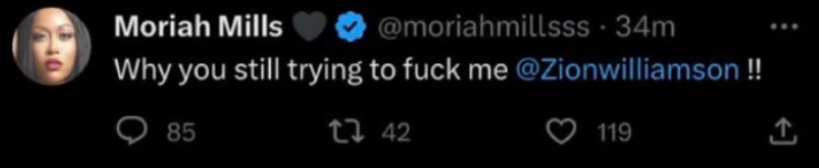 The conflict between Moriah Mills and Zion Williamson played out publicly and involved serious accusations, personal details, and emotional responses. Mills used her platform to express anger and frustration after learning about Williamson’s relationship with another woman. Her tweets gained wide attention, especially after she referenced private recordings and demanded public accountability. While Williamson did not respond, the situation continued to generate discussion online until Mills’ account was suspended. The controversy remained unresolved publicly and left many questions unanswered.