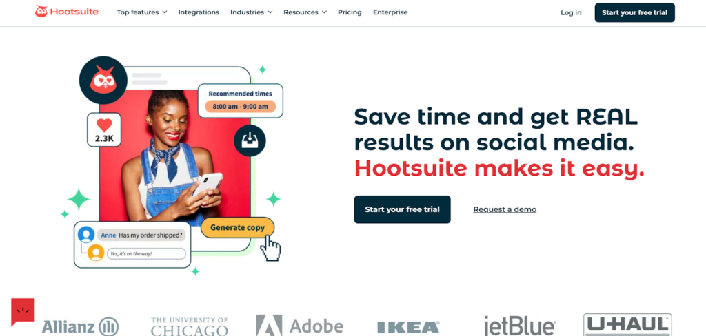 Hootsuite is a well-established social media management tool that brings together a wide range of automation features into one cohesive platform. It simplifies content scheduling and planning through a user-friendly content calendar that enables you to visualize your posts, create custom queues, or auto-schedule tweets at the most engaging times. With Hootsuite’s OwlyWriter AI, you can easily generate engaging content ideas, craft tweets, and even create relevant hashtags, making social media management more efficient.