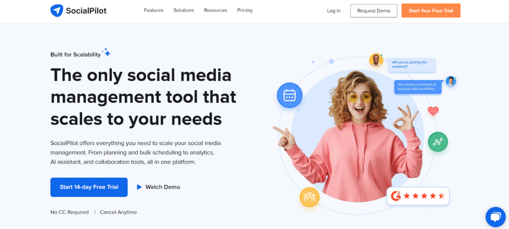 SocialPilot offers plans starting at $30 per month, with a 14-day free trial available.
