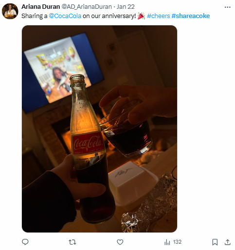 The campaign not only went viral but also reversed a decline in Coca-Cola consumption and won multiple awards, surpassing initial campaign goals. The hashtag remains active, with 278 mentions across the internet in the past 30 days, primarily on Instagram.