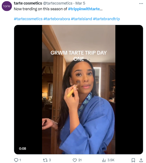Tarte Cosmetics used influencer marketing in the #Trippinwithtarte campaign, inviting influencers on fully sponsored trips to various destinations. In return, influencers shared content showcasing Tarte products using the hashtag #Trippinwithtarte. This campaign successfully boosted Tarte’s social media following and brand reach, highlighting the effectiveness of influencer partnerships and strategic hashtags in amplifying brand visibility.