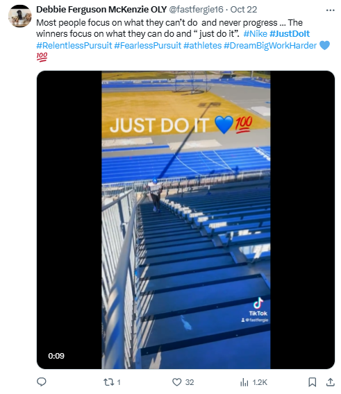 Today, #JustDoIt stands as one of the most successful hashtag campaigns, generating high user engagement and extensive user-generated content on social media daily. Over the last 30 days alone, the hashtag has been used over 74,000 times, resulting in a social media reach of 196 million, with most mentions appearing on Instagram and a substantial presence on X. Additionally, #JustDoIt’s Presence Score surpasses that of 74% of brands, underscoring its impact and sustained relevance.