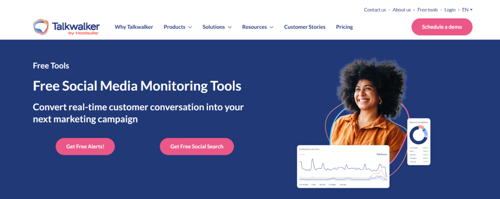Talkwalker’s tracking tools cover Instagram, Facebook, X, and several other platforms, along with websites, blogs, and forums. It provides essential metrics, including mentions, engagement, reach, and sentiment. The tool’s graphical reporting options help visualize which hashtags are delivering results for brands.