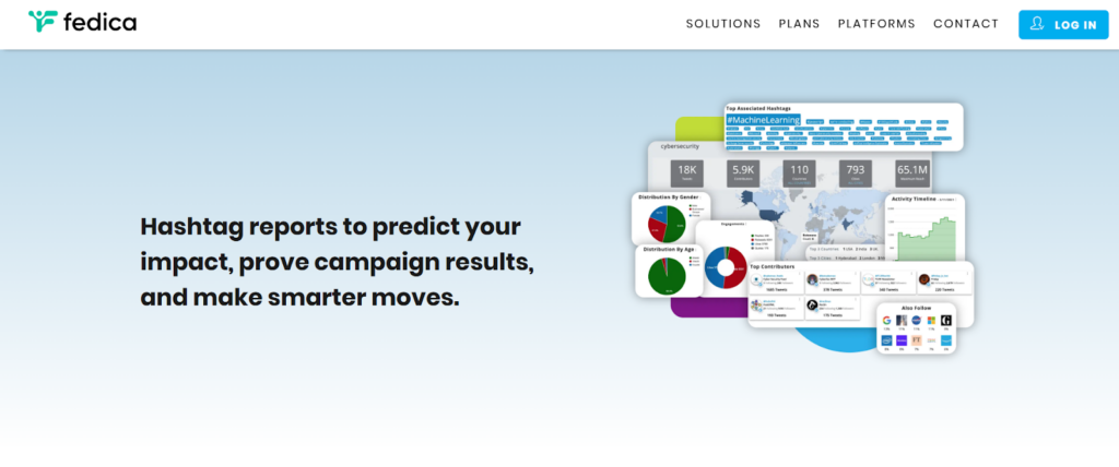 Fedica provides detailed reports on any hashtag, offering insights into usage locations, related topics, key influencers, and audience demographics. It includes data on engagement, sentiment, reach, and demographics, delivering a thorough overview of performance and audience impact.